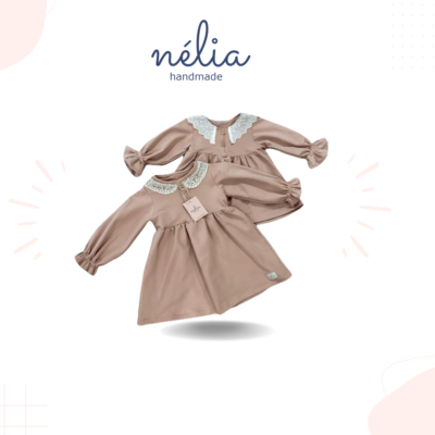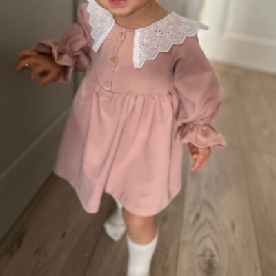 Piękna bawełniana sukienka w kolorze brudnego różu z uroczym retro kołnierzykiem typu bebe. Dwa rodzaje kołnierzyków do wyboru. To, co wyróżnia tę sukienkę to urocze balonowe rękawy.